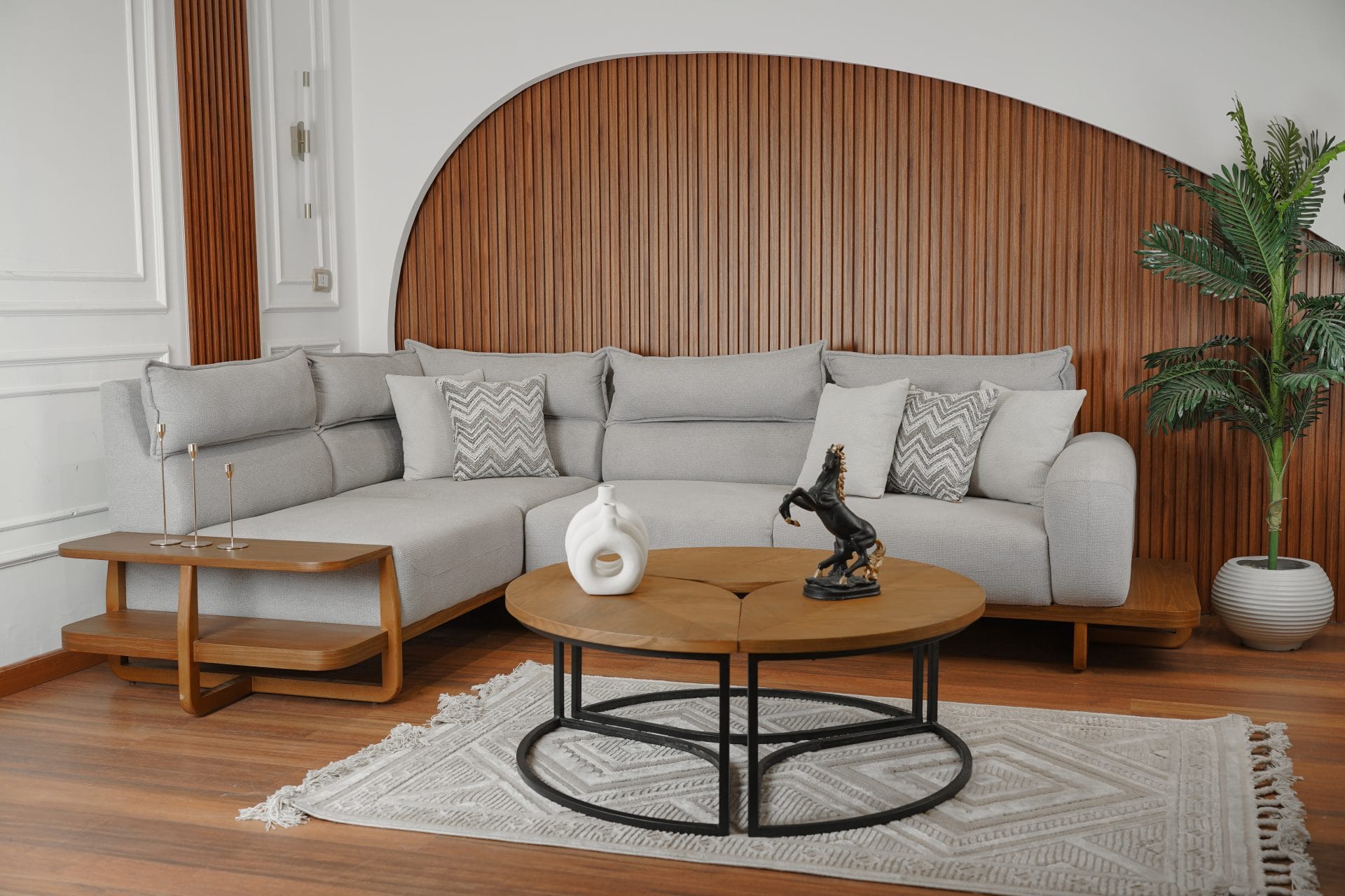 ركنه ايطاليا قطعتين مقاس ٣ ف ٢ الخشب زان احمر اسفنج كثافه ٣٤ القماش كتان مستورد