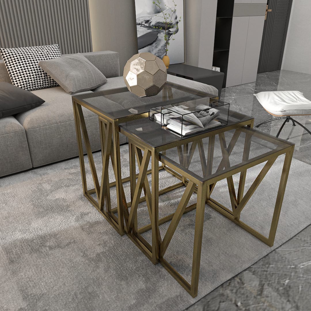 تربيزه متداخله روند مكونه من ٣ قطع القطعه الكبيره مقاس ٦٠ ف ٤٠ ومقاس القطعه الصغيره ٥٠ ف ٤٠ ومقاس القطعه الصغيره